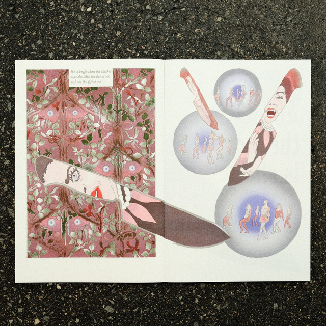 »It's a knife« by Clément Clausse invites you to immerse yourself in a 19th-century pop duel as we follow Ariana Grande, a young student at a prestigious dance school, grappling with the terrible headmistress, Madame Blanc, who tries to crush the young woman’s dreams. The artist uses imagery based on Joan Bennett’s performance in Dario Argento’s film «Suspiria» (1977), Ariana Grande's music videos «yes, and?» (2024) & «thank u, next» (2019) and the TV series «Scream Queens», produced by Ryan Murphy (2015).