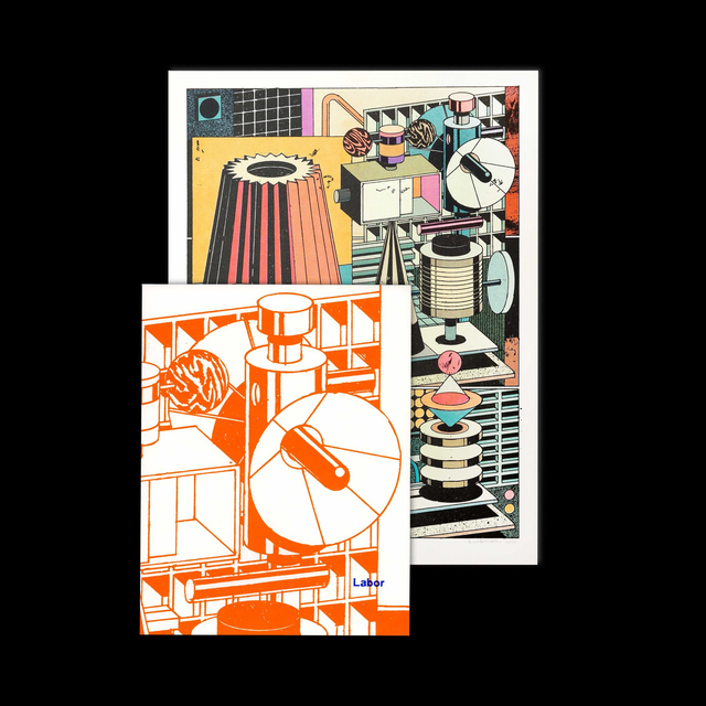 LABOR is an apparatus: channeling signals, reception, efficiency into a system of ordered pages, between hyper logic and fiction. Dominik Dabrowski unfolds a story of found footage within his drawings: forgotten technical illustrations resurface and are rearranged into a minute sequence with mechanical tact, pausing and resuming its work page by page.