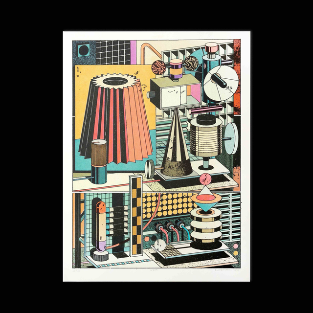 Riso Print in Fluo Pink, Yellow, Light Teal & Black on Arena Ivory Smooth 250g, signed & numbered.
