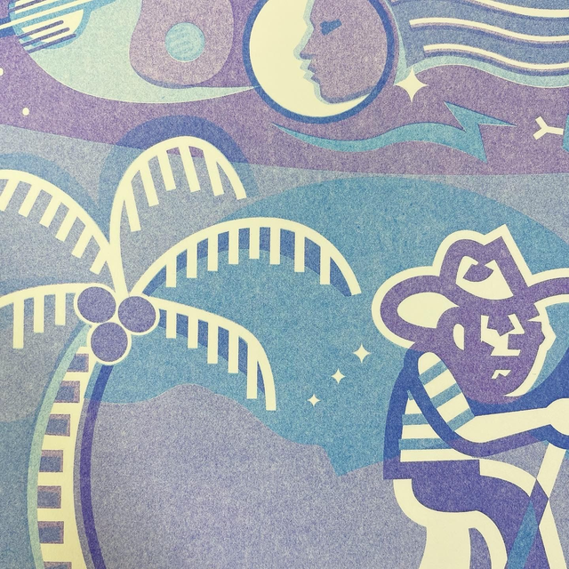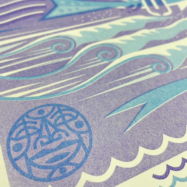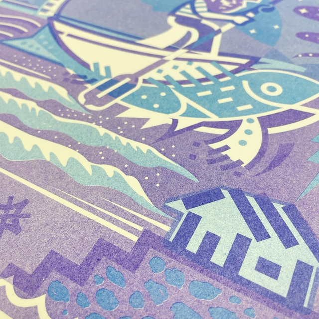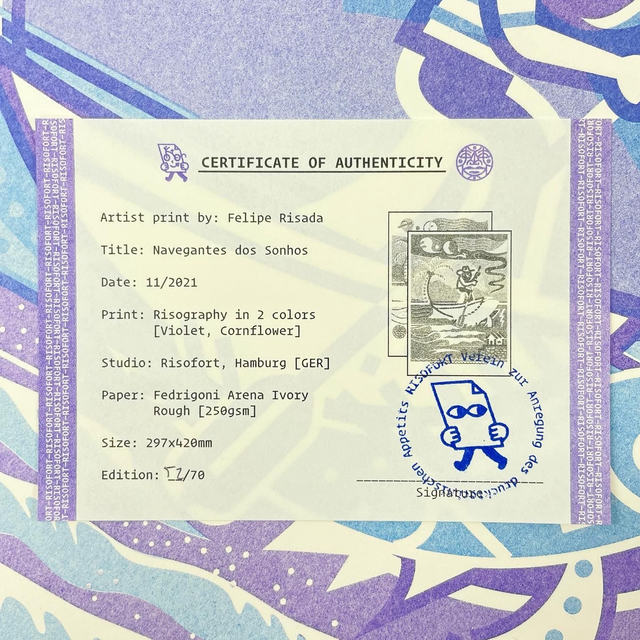 Together with Felipe Risada from São Paulo, we produced this beautiful, linocut-aesthetics print called »Navegantes dos Sonhos«