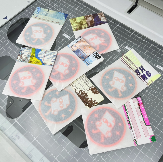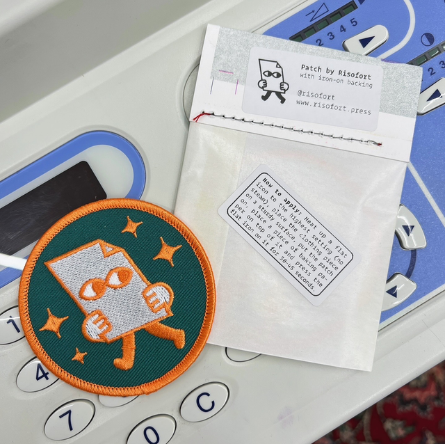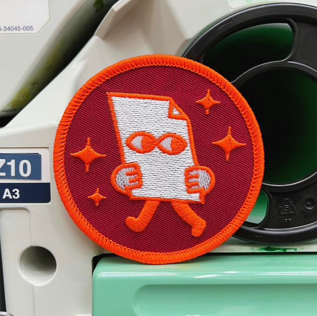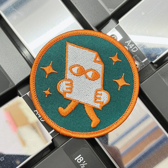 Patch with our little paper guy on it, roughly 8cm diameter.