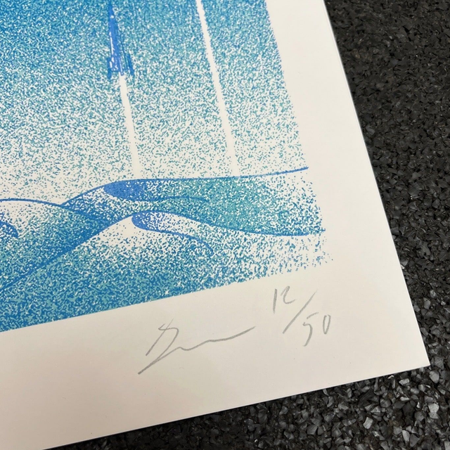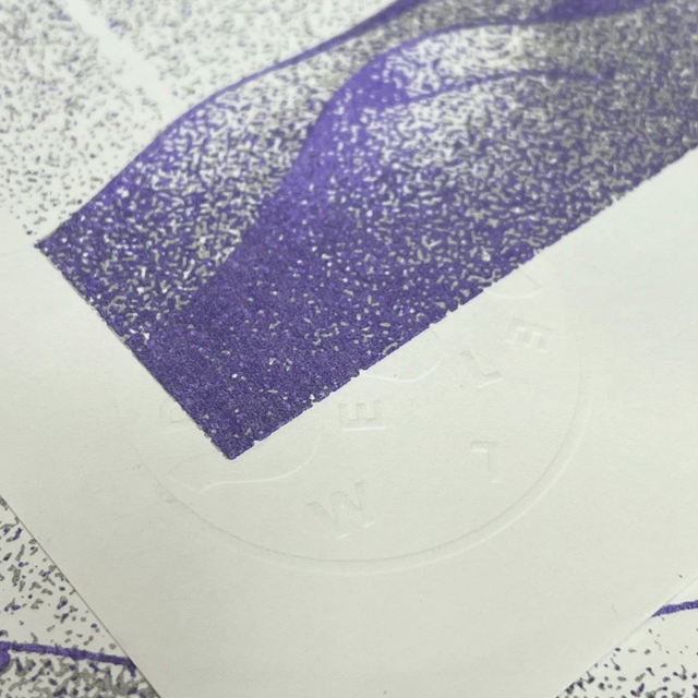 297x420mm, printed in Violet & Light Grey / Blue & Light Teal / Raspberry & Flatallic Gold on Fedrigoni Arena White Rough 170g, edition of 3x50.
